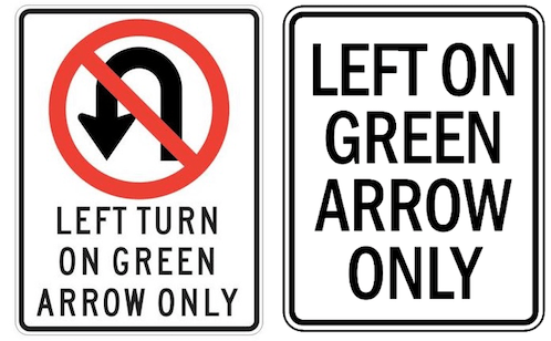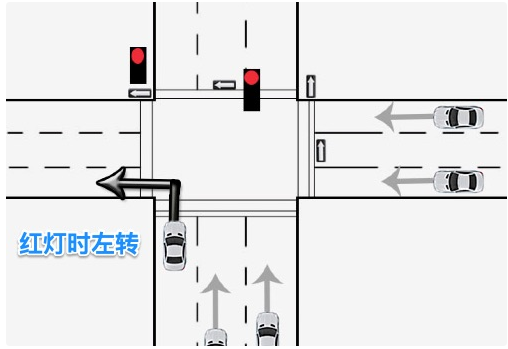 - 只能在绿色左转箭头亮起时才可以左转弯。