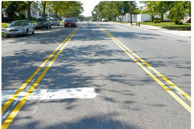 130.如图所示,如果有两组双黄实线且它们之间的距离至少有2英尺宽;这表示什么?