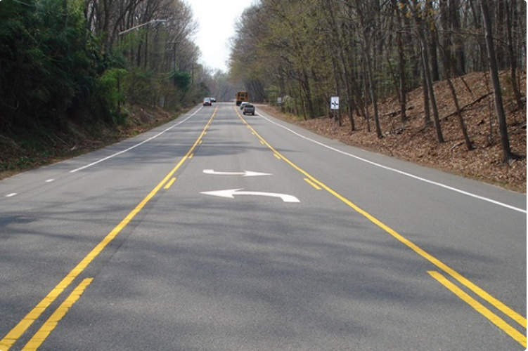 144. 如图所示,你准备在这条车道上左转弯,而中间的车道两侧都画有实线条;这种情况下你的车子可以驶入中间的车道吗?
