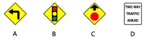 184. 下面的哪一个标志告诉你前面有交通信号灯?