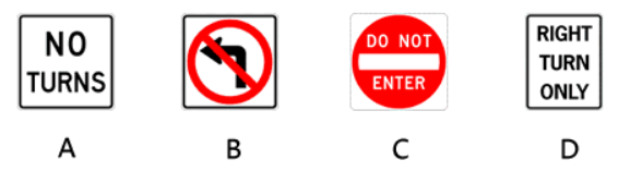 186. 下面的哪一个标志告诉你当前路口禁止任何方向的转弯操作?