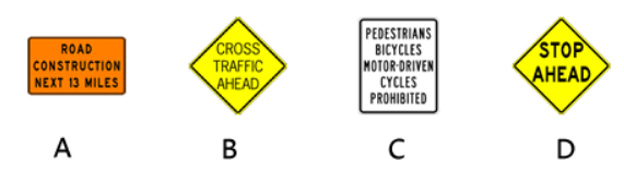 181. 下面的哪一个标志告诉你前面的道路正在施工?