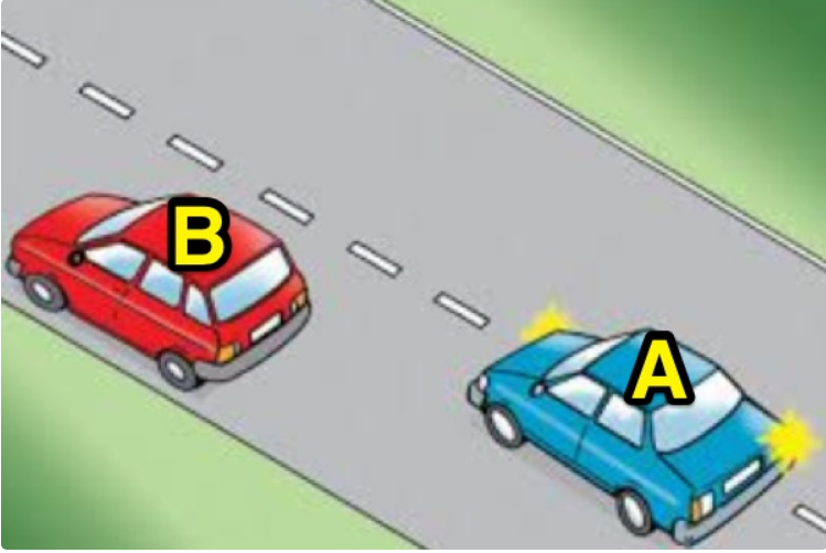 255. 如图所示,你作为A 车的司机准备切换到旁边的车道来超越B 车。超车完成后,如果你还想回到原来的车道上,应该如何判断你和B 车之间保持有足够的安全距离呢?