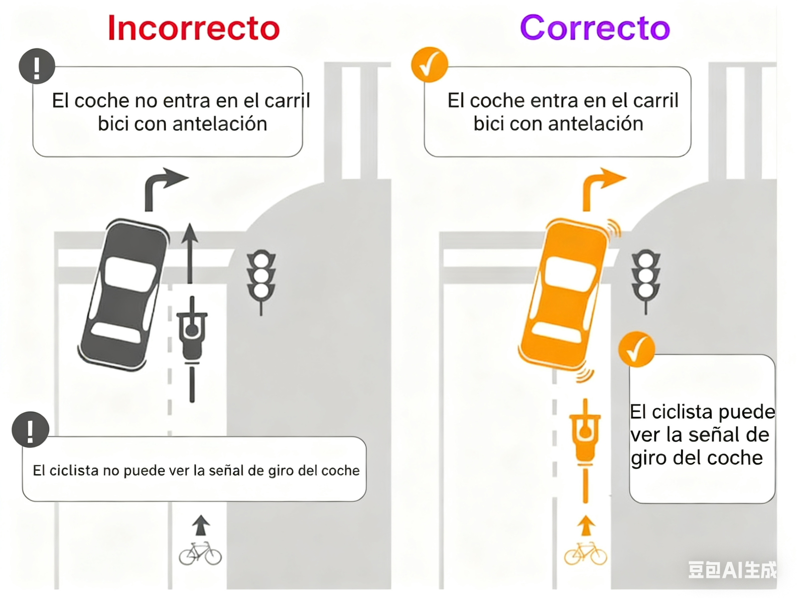 2. ¿Qué debes hacer al girar a la derecha y encontrar un carril para bicicletas?